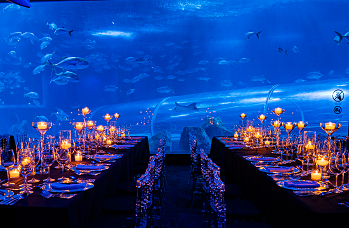 RIO - Alta gastronomia e vida marinha se encontram em uma experiência sensorial e única diante do Grande Tanque Oceânico.