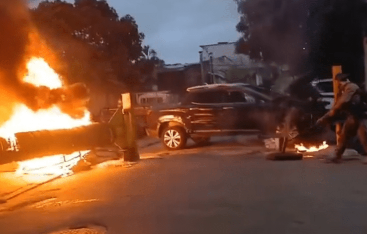 Criminosos atearam fogo em barricadas nos acessos da comunidade.