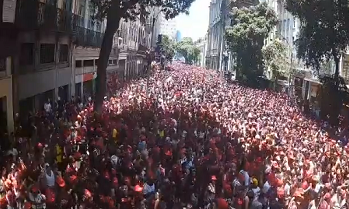 Torcedores do Flamengo festejam tetra da Libertadores com jogadores no Centro